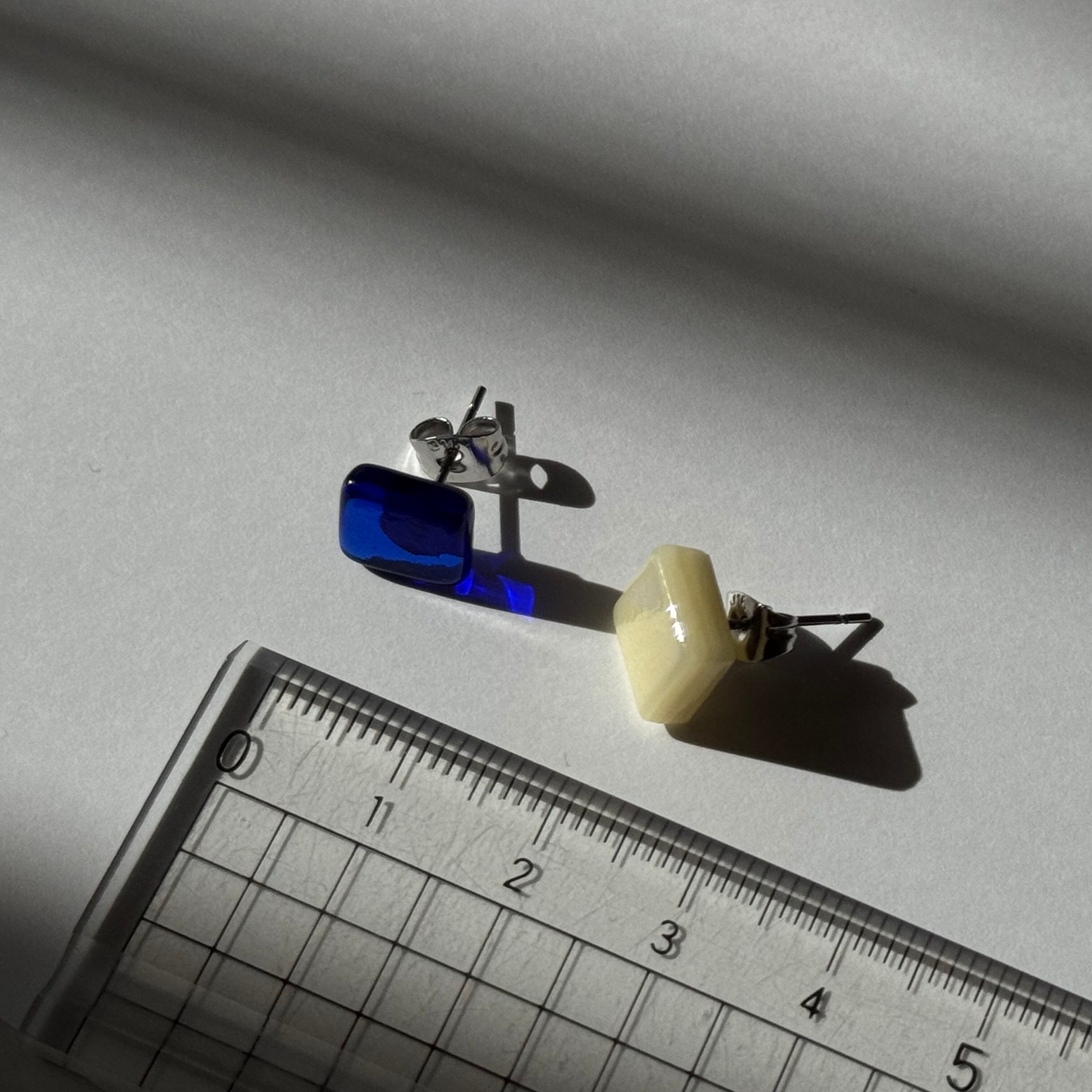 左右で色の異なる、ガラスのピアス・イヤリングです。